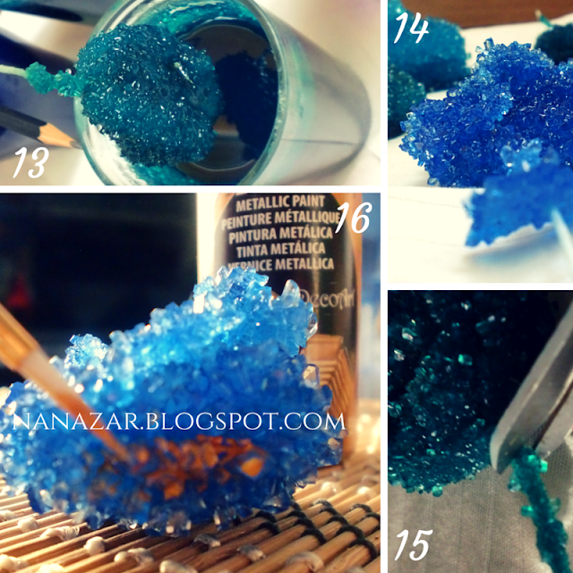 Pasadas esas semanas habremos acabado. Sácalo del recipiente (13) déjalo secar (14) corta la cuerda (15) y píntalo al gusto si quieres (16)